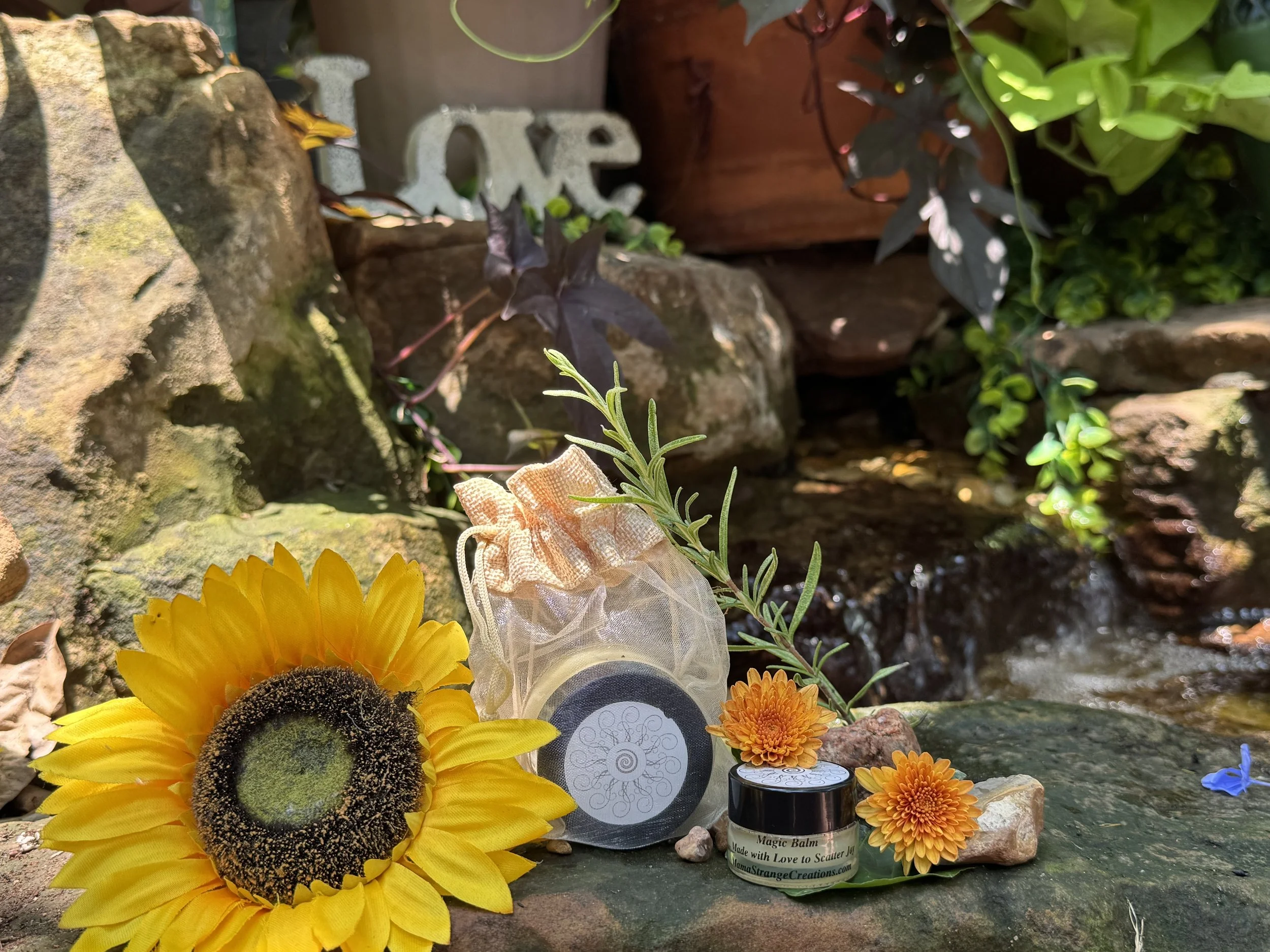 Dry Brushing, Planning & Guasha with Mama Strange Creations Sõl Blü Oil. An handmade infusion of Blue Lotus, Cacao, & Hawaiian Kukui Oil.